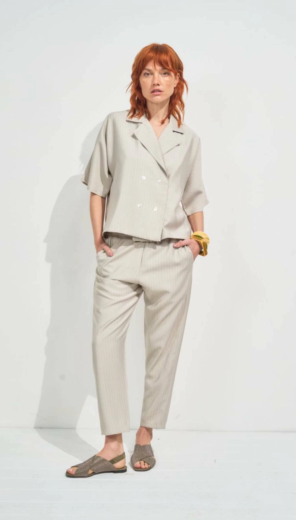 Pantalón babucha en sastrero de verano, con elástico en cintura y tira que regula su tamaño. Largo al tobillo, lo que te permite usarlo con todo tipo de calzado.